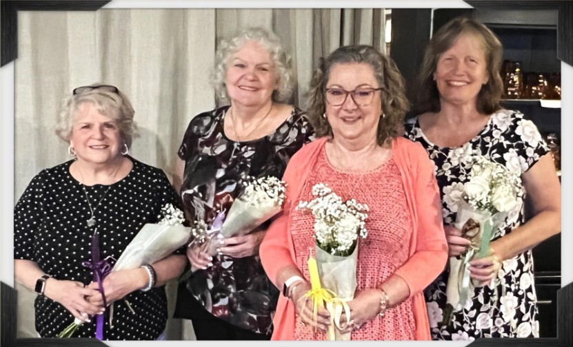 Each year, four Officers are elected: President, Vice-President, Treasurer, and Secretary. We thank our outgoing officers and celebrate the year's accomplishments in June at our End of Year Dinner – usually at a local restaurant. It’s a lovely event and a dinner out with the girls!
